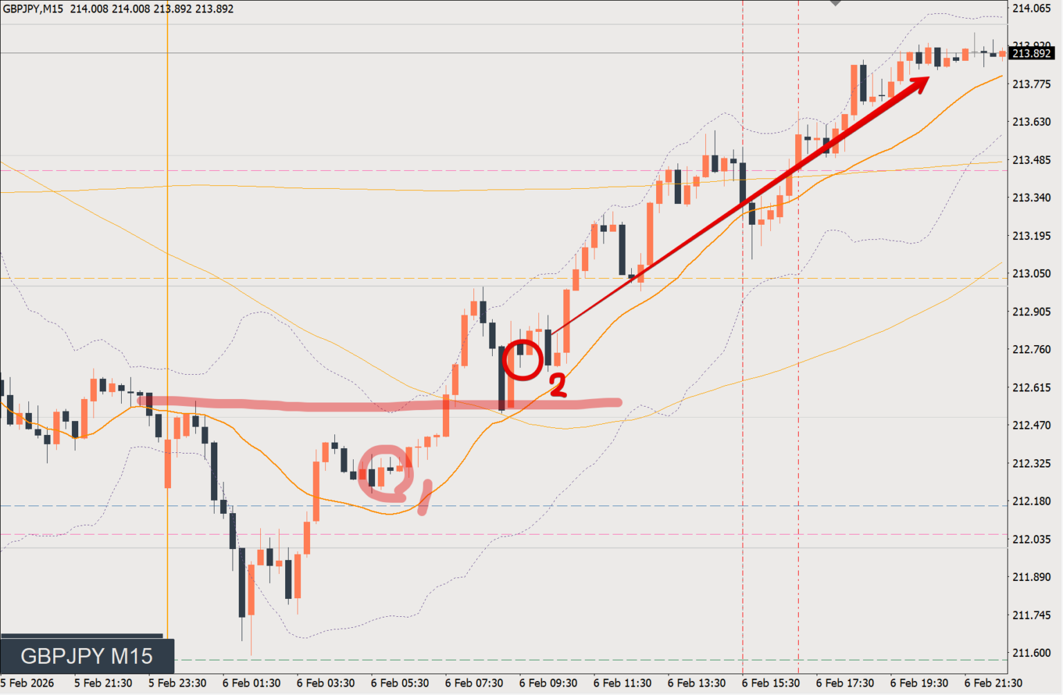 朝のシナリオどおりにトレードするなら、◯2からのロングになります。